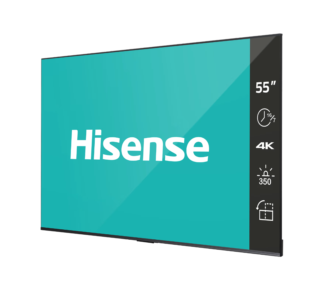 El Hisense 55DP30FE es un display profesional de señalización digital de 55″ con resolución 4K UHD (3840 × 2160), diseñado para operar 16 horas al día, 7 días a la semana (16/7). Este modelo es ideal para entornos comerciales, corporativos o de retail, ofreciendo una solución robusta y eficiente para la difusión de contenido digital.