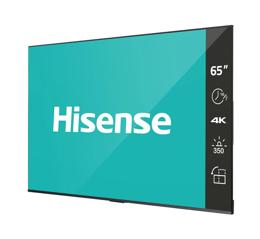 El Hisense 65DP30FE es un display profesional de señalización digital de 65″ con resolución 4K UHD (3840 × 2160), diseñado para operar 16 horas al día, 7 días a la semana (16/7). Este modelo es ideal para entornos comerciales, corporativos o de retail, ofreciendo una solución robusta y eficiente para la difusión de contenido digital.